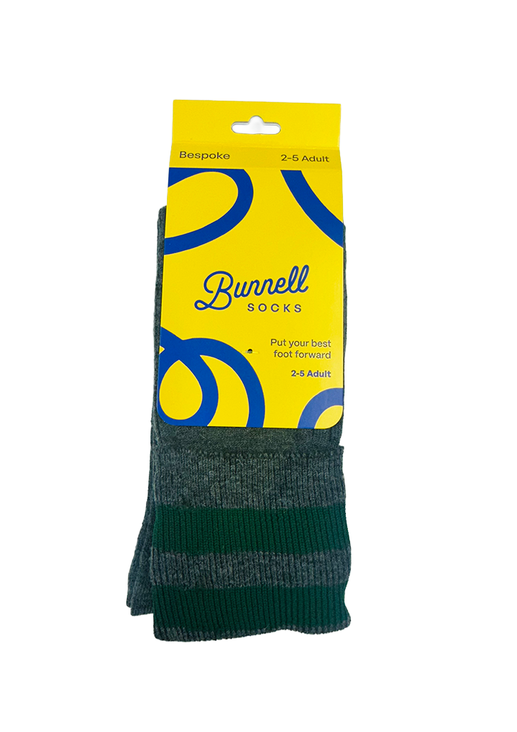 St Mary's Tauranga School Sock Wool/Nylon Grey/Forest Bars
